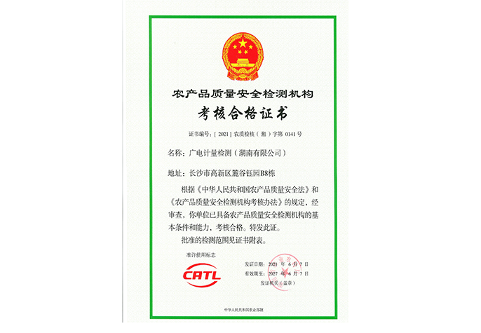 农产品质量安全检测机构(CATL)合格证书-开云(湖南)有限公司
