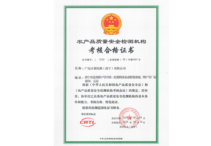 农产品质量安全检测机构(CATL)合格证书-开云(南宁)有限公司
