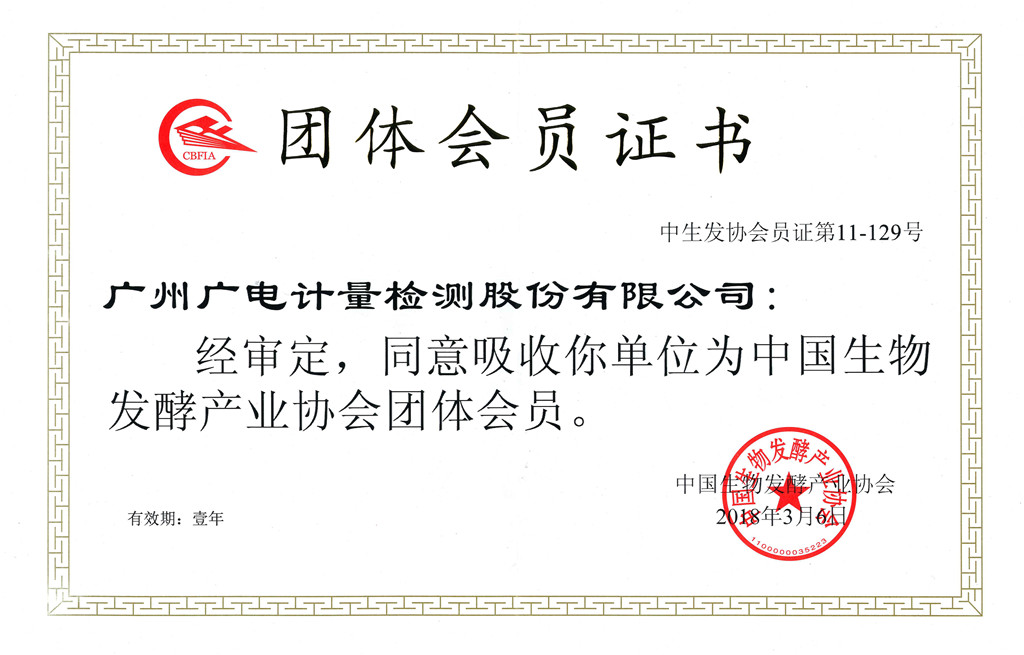 广东计量协会常务理事单位会员证书