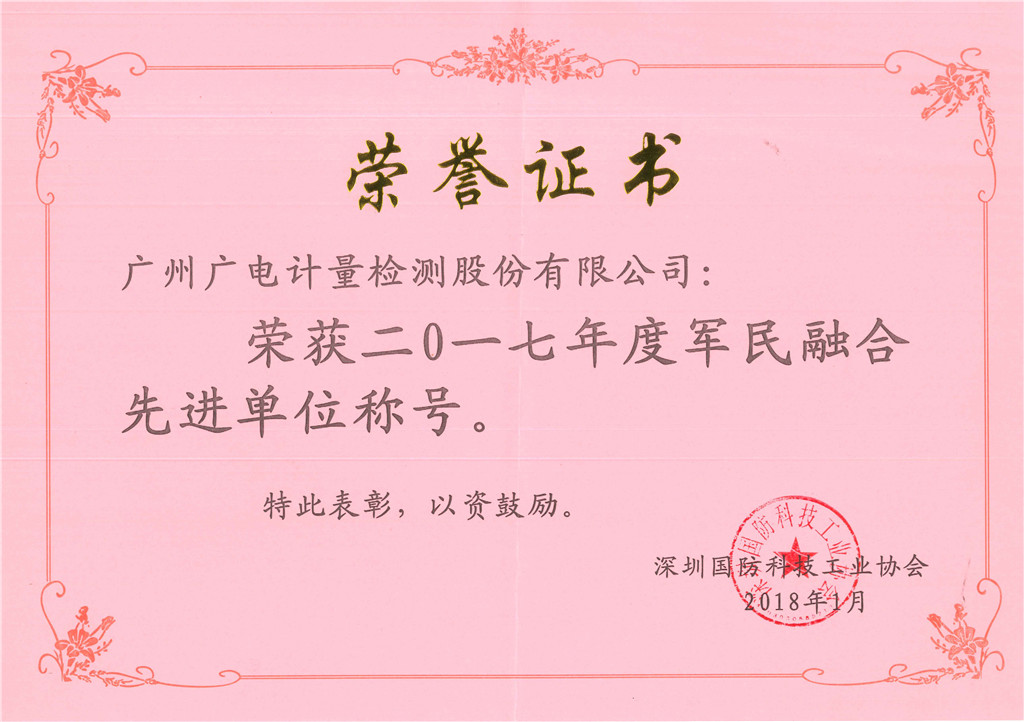 2017年度军民融合先进单位称号