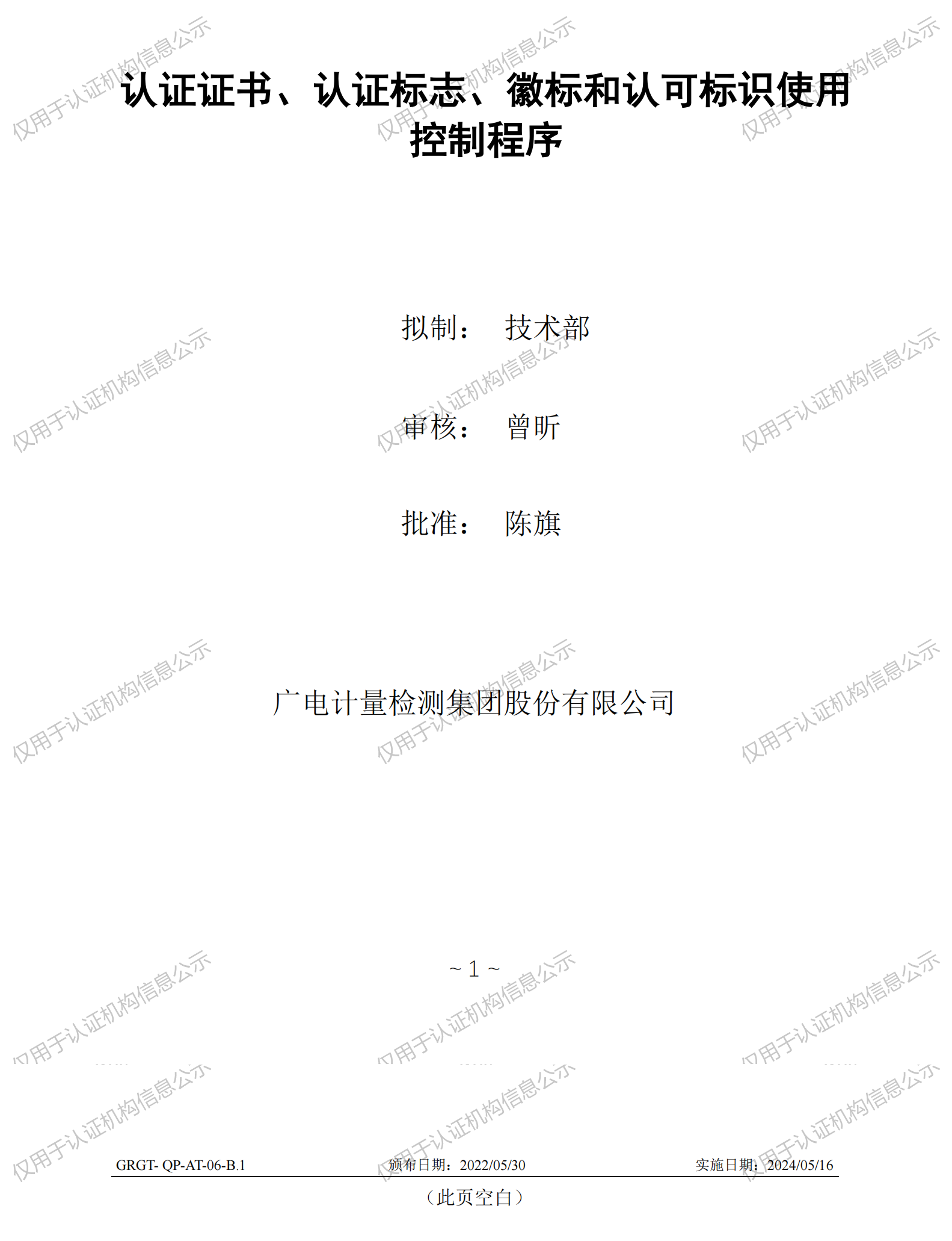 认证证书、认证标志、徽标和认可标识使用控制程序
