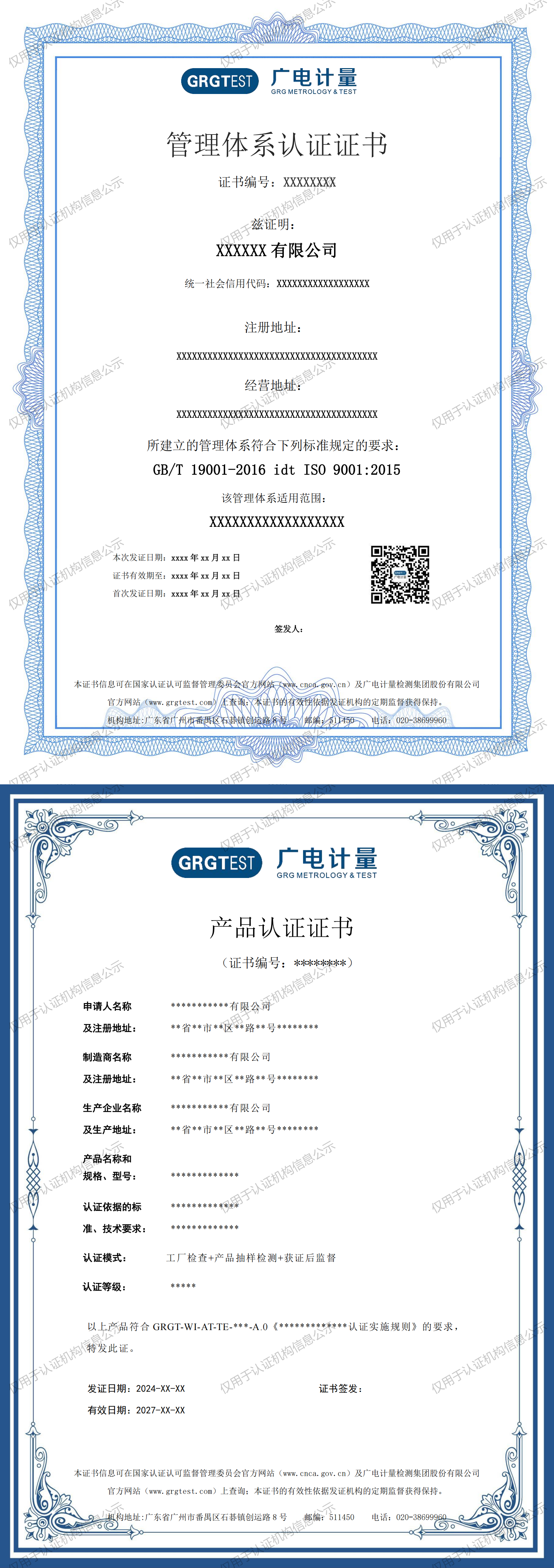 认证证书样式(管理体系+产品认证)