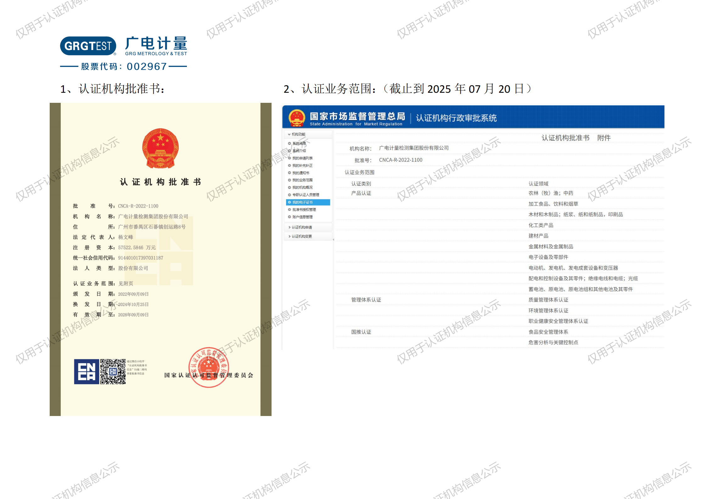 开云获批的认证资质及认证业务范围