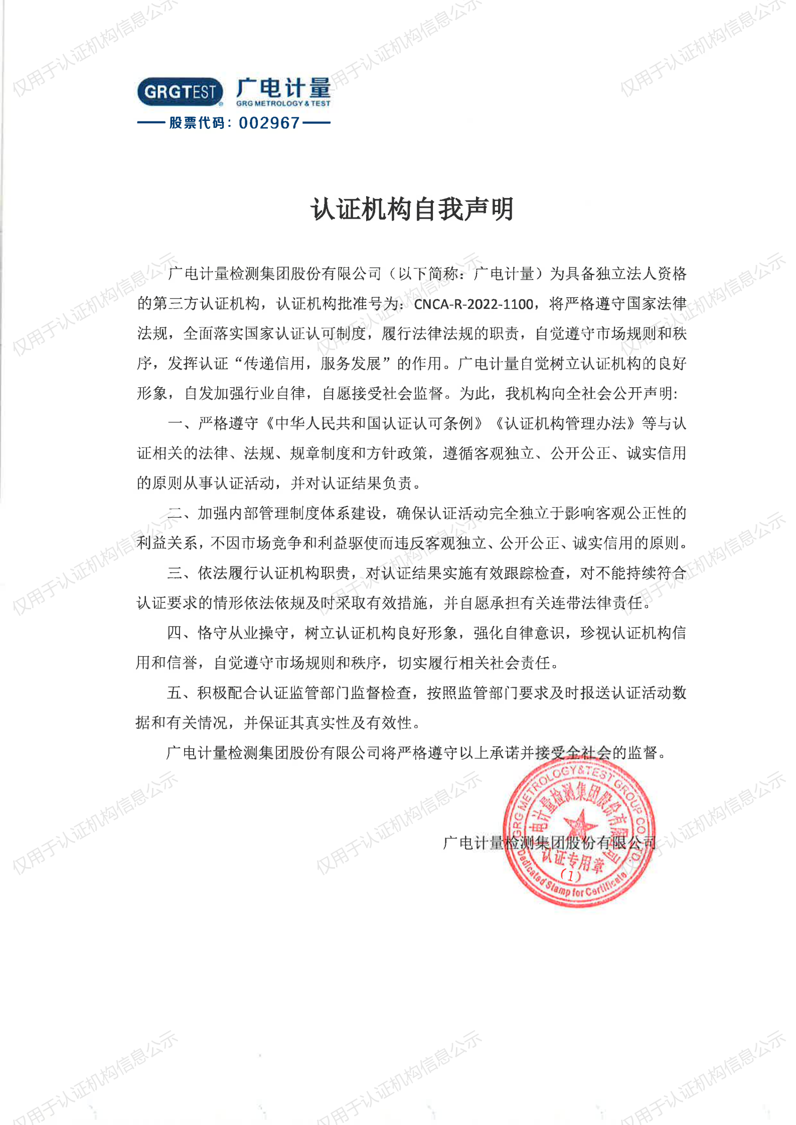 认证机构自我声明