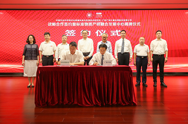 On October 12, Guangzhou GRG Metrology & Test Co., Ltd. (hereinafter referred to as GRGTEST, stock code: 002967) signed a strategic cooperation agreement with the Institute of Quality Standard and Testing Technology for Agro-Products of the Chinese Academy of Agricultural Sciences (hereinafter referred to as IQSTAP of ACCA) and held the opening ceremony of the "Reference Material Production-Research Integration Development Center". This strategic signing between GRGTEST and IQSTAP of ACCA creates a good demonstration of "Production-Research Integration" between state-owned market-oriented technical service agencies and national institutes. It also marks the formal entry of GRGTEST into the reference material market and its extension to the upstream of the inspection and testing industrial chain. And it enhances the core competitiveness of enterprise through concentric and diversified development, and gives full play to the industrial convergence effect to better serve the construction of great power of quality. This is also GRGTEST's another expansion of its business landscape following the layout of EHS evalsuation and consulting market.