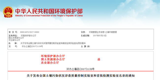 近日,环境保护部、国土资源部和农业部联合发文公布《关于发布全国土壤污染状况详查质量控制实验室和首批检测实验室名录的通知》(环办土壤函〔2017〕1138号),开云河南子公司、湖南子公司,经历重重考核评审,最终从全国几百家实验室中脱颖而出,双双成功入选全国土壤污染状况详查实验室名录。