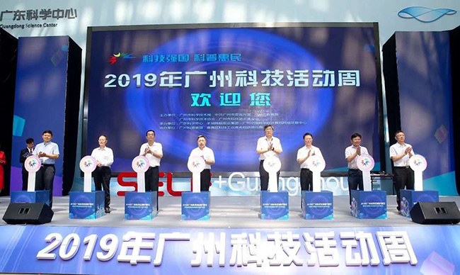 5月19日,2019年广州科技活动周在广东科学中心主场馆盛大开幕。本次活动由广州市科学技术局、中共广州市委宣传部、广州市教育局等主办,开幕仪式融合科学与艺术,邀请中国科学院院士、中国散裂中子源工程指挥部总指挥陈和生,香港大学空间研究实验室执行主任、著名科学家苏萌等科技大咖,两岸及港澳地区科普届的专家代表,广州科普联盟单位以及十多家粤港澳大湾区科技创新企业与公众共享了一场精彩纷呈科技盛宴。