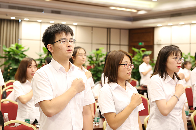 台下应届生集体宣誓,共表决心