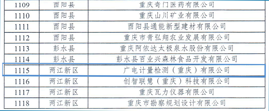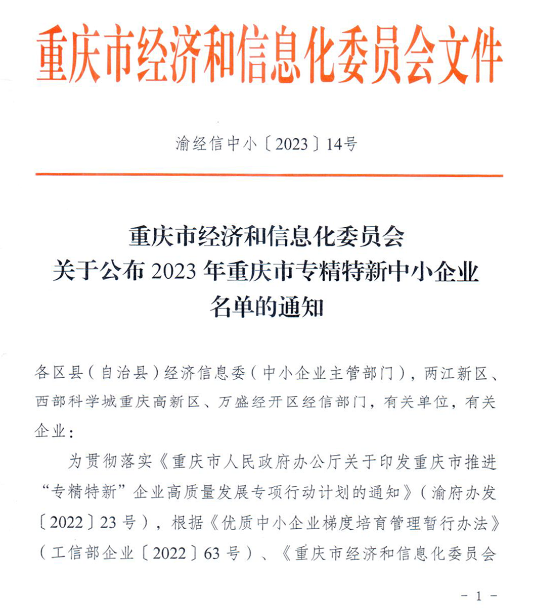 重庆市“专精特新”中小企业名单