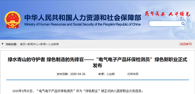 2020年3月3日,中国人社网正式发布16个新职业,据了解,这是自2015年版《中华人民共和国职业分类大典》颁布以来发布的第二批新职业。其中的电气电子产品环保检测员大家都较为陌生,下面就为大家揭开它的神秘面纱。