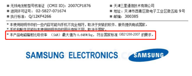 国际科学界用比吸收率(SAR)值来对手机辐射进行量化和测量。目前,根据中国国家强制标准GB 21288-2007,任意10克生物组织、任意连续6分钟内的平均比吸收率(SAR)值不得超过2.0W/kg。如不少手机厂商都会向大众展示其SAR的信息: