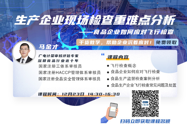 公开课 | 生产企业现场检查重难点分析——食品企业如何应对飞行检查