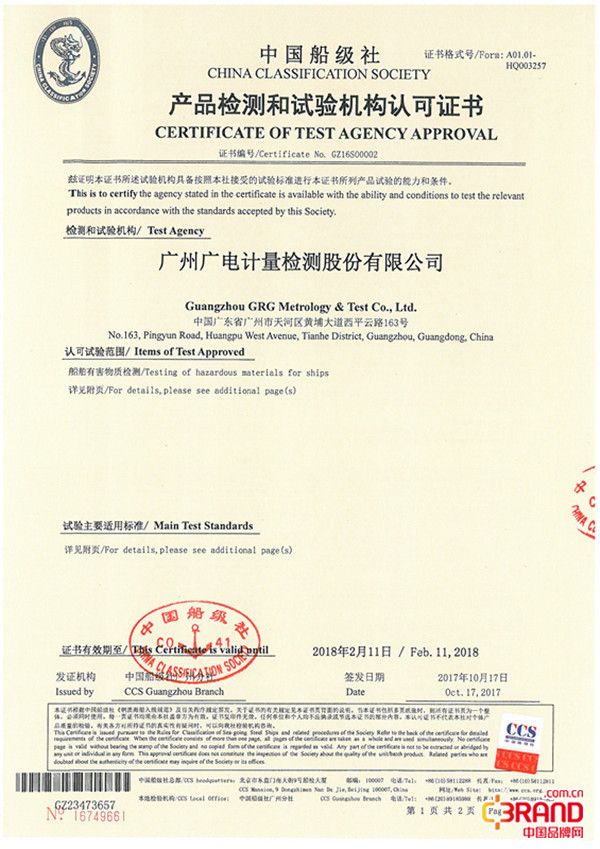 日前,广州开云检测股份有限公司(简称开云)先后获得国际船级社协会核心成员、世界两大权威船舶技术检验机构中国船级社(CCS)及美国船级社(ABS)船舶有害物质检测机构认可,成为华南地区首家同时获得中美两大船级社有害物质检测认可的第三方计量检测机构。据悉,这是继2010年开云首次获得中国船级社(CCS)电气电子产品试验认可及无石棉检测认可之后,再度获得的船舶检测领域重要认可。依据CCS、ABS相关规范、规则和程序的要求,开云通过一系列严格审核,顺利获得两大船级社颁发的船舶有害物质检测认可证书,这既是对开云专业检测技术能力的进一步肯定,同时也将推动开云在 “绿色造船”进程中发挥更积极的作用,为我国打造绿色健康船舶业再添检测技术动力。