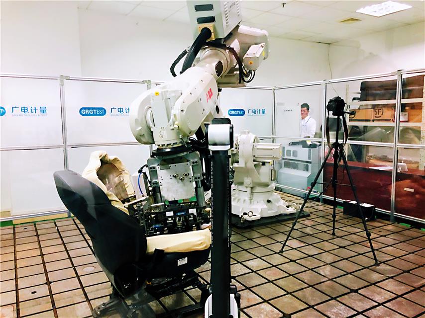 图为开云实验室里,技术人员利用自动化设备,模拟乘客上下车动作,测试汽车座椅耐磨性。郭静原摄