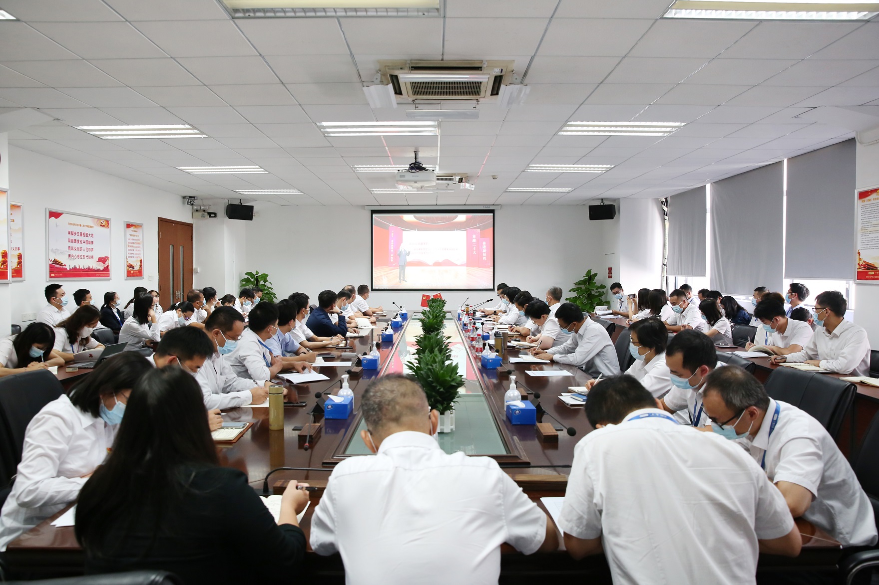 会议首先进行理论学习,与会人员学习了《习近平谈治国理政》第四卷——坚定不移走高质量发展之路和《习近平生态文明思想学习纲要》。《习近平谈治国理政》第四卷中,习近平总书记关于坚定不移走高质量发展之路的重要论述,进一步丰富和发展了习近平经济思想,是中国特色社会主义政治经济学的最新成果。《习近平生态文明思想学习纲要》系统展现了习近平生态文明思想的核心要义、精神实质、丰富内涵、实践要求,是深入学习领会习近平生态文明思想的权威理论读物。公司党委宣传部副部长刘秀芬从“深刻理解和把握习近平生态文明思想的科学体系”“深刻理解和把握习近平生态文明思想的基本内容”“深刻理解和把握习近平生态文明思想的实践要求”等三个方面进行了导学,通过学习,与会人员纷纷表示要立足岗位,深刻学习领会新时代党的创新理论,坚持不懈用党的创新理论最新成果武装头脑、指导实践、推动工作,以实际行动和优异成绩迎接党的二十大胜利召开。