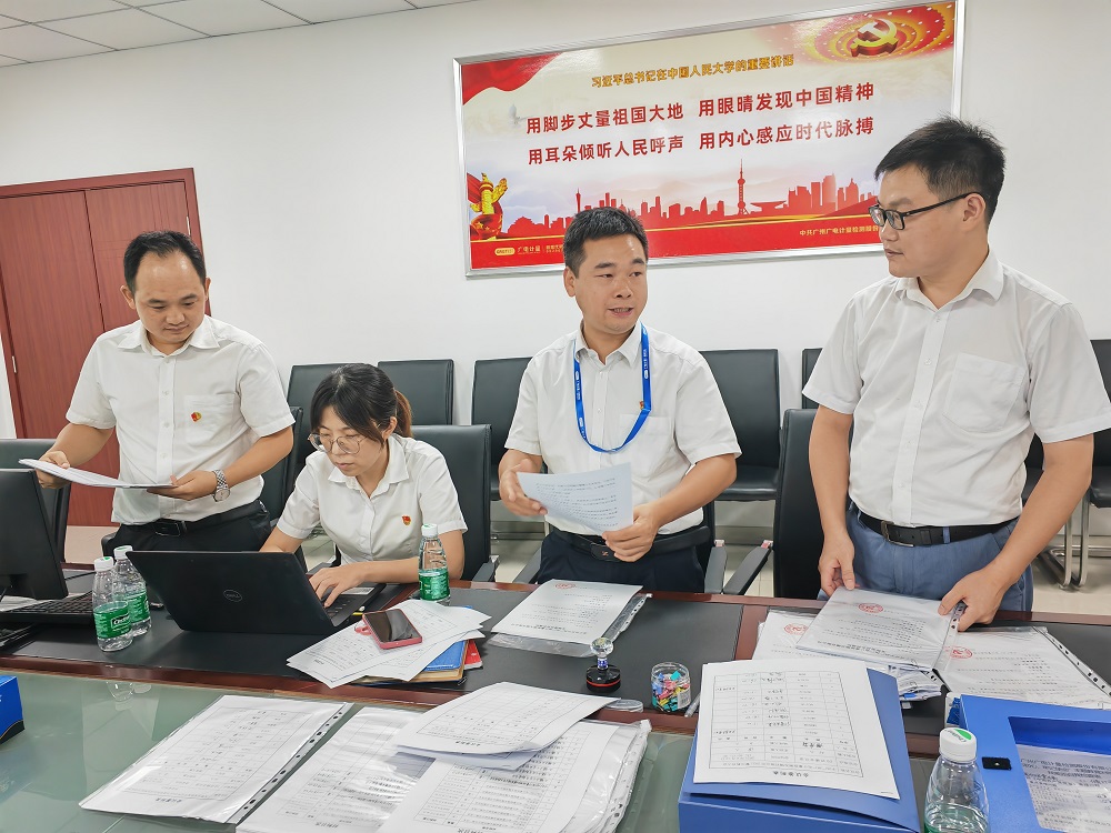 龙阳(右二)带领同事加班保障项目进度