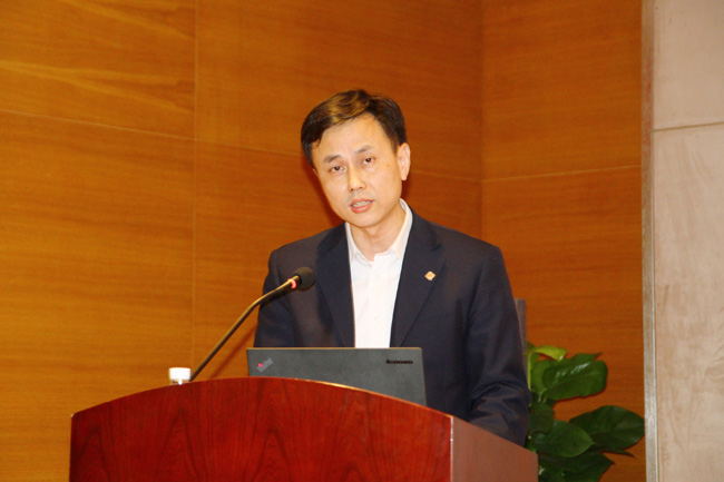 广东造船工程学会船舶轮机与电气专业委员会主任委员、中船黄埔文冲船舶有限公司副总工程师林洪山致辞