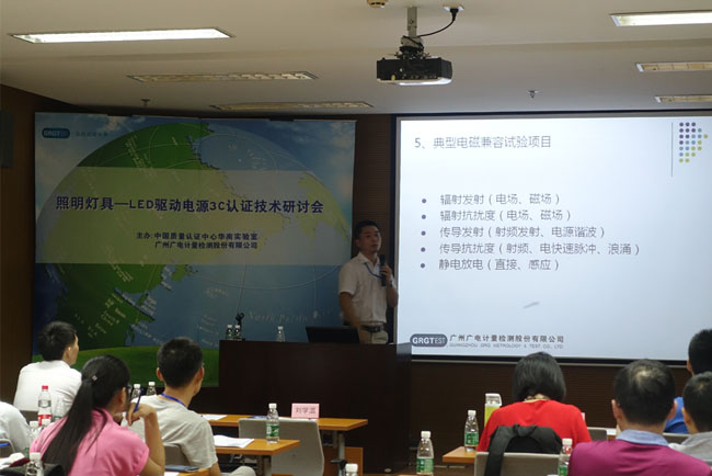 在GRGT刘道云总助致辞后,研讨会正式召开。中国质量认证中心华南实验室刘学温高级工程师以及GRGT张雄、腾金金高级工程师分别针对“安全检测认证介绍及技术运用分析”、“电磁兼容检测标准介绍及技术运用分析”以及“灯具国际认证技术解决方案”做专题研讨。研讨过程讲解生动、理论与实例结合、互动良好,得到在场各企业代表的一致认可。